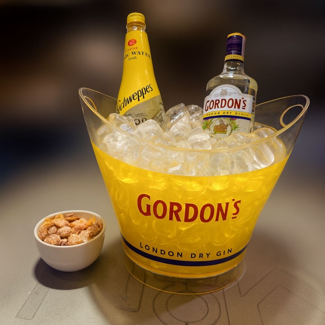 6'li buz gibi bira kovası ve yanında patates cipsi; dost meclislerinin vazgeçilmezi.